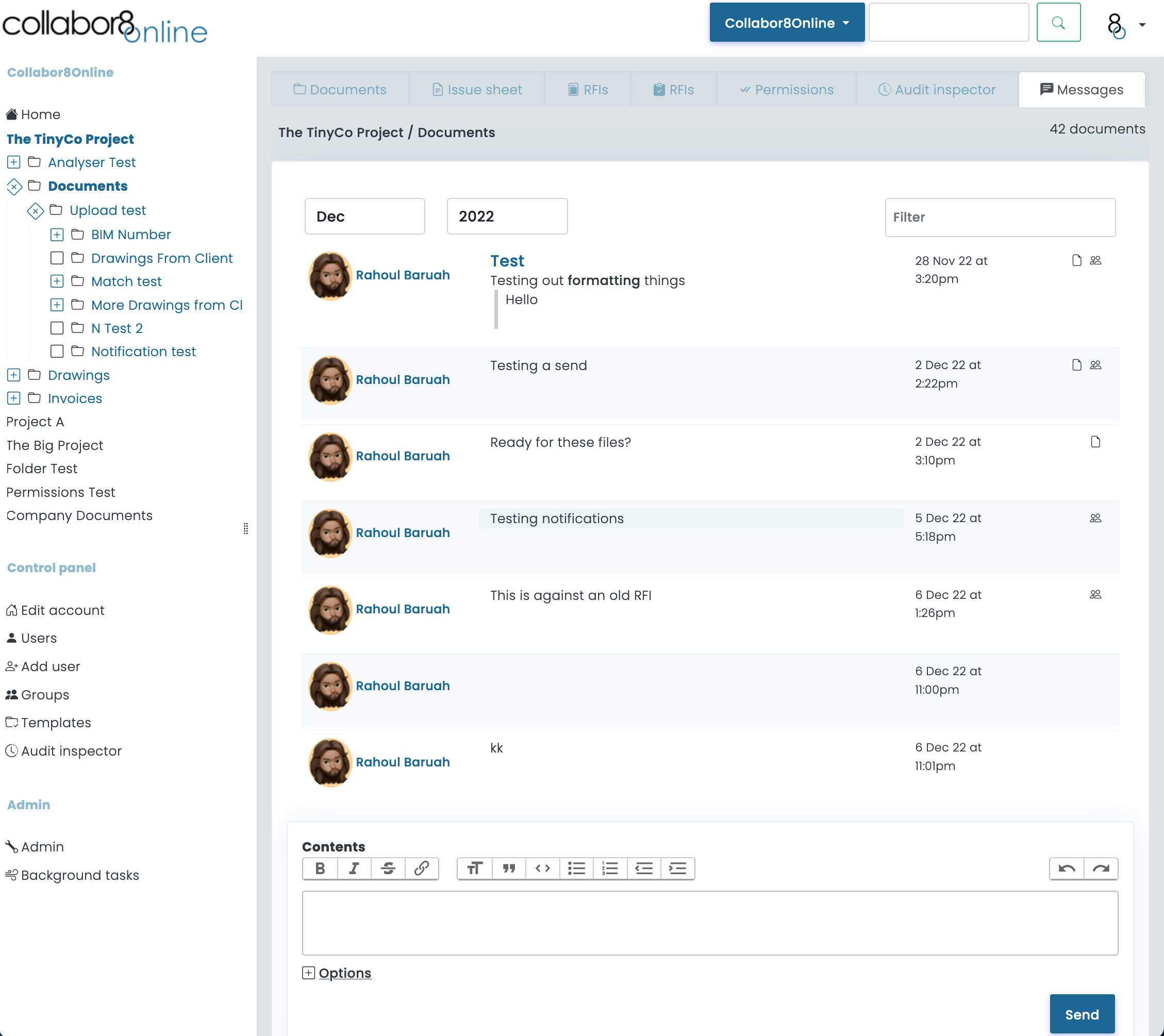 The last few weeks, I've been working on what is essentially a Slack-clone in Collabor8online. As a collaboration tool (with document management and, very soon, full blown workflows and tasks), communicating with the other people involved on your project is at the heart of how things work. And thanks to Hotwire it was pretty easy to add in.